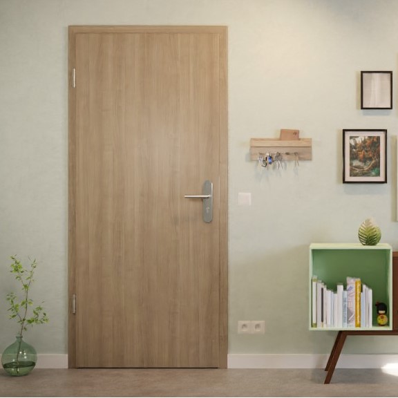 Die Tür hält aufgrund der Schallschutzklasse 1 Geräusche fern. Sie hat zudem schon im Standard die Klimaklasse 2 und ist deswegen energiesparsam. Als Türeinlage kommt eine Vollspanplatte zum Einsatz.